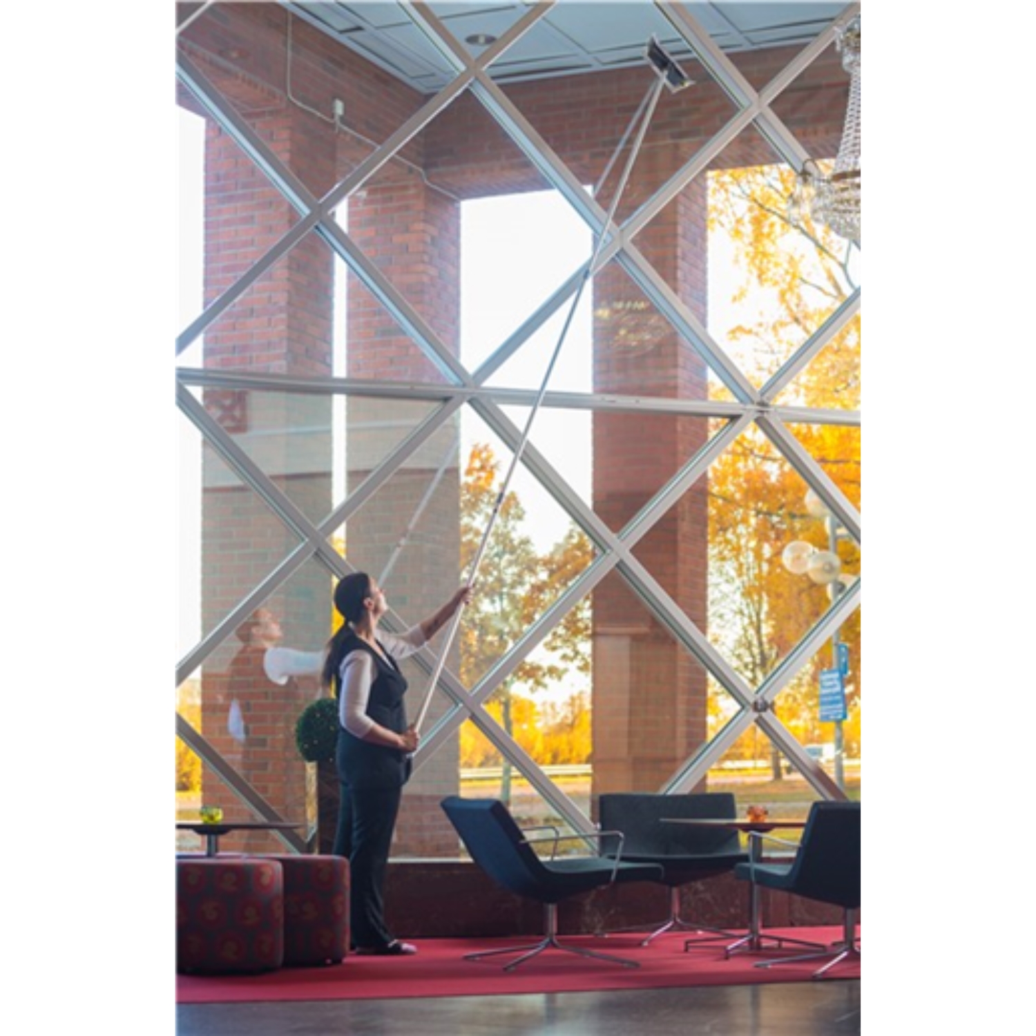 Langt teleskopskaft til professionel rengøring, der nemt indstilles til den optimale arbejdsstilling, kan skaftet justeres fra 148 til 400 cm. Det skridsikre håndtag sikrer en ergonomisk arbejdsstilling, og skaftet er nemt at rengøre.