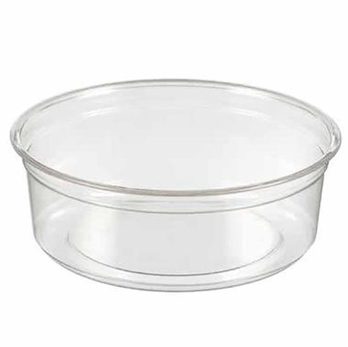 Det runde bæger i klar RPET er ideelt til servering af diverse fødevarer. Med sin praktiske størrelse og transparente udformning præsenterer det indholdet på en indbydende måde.