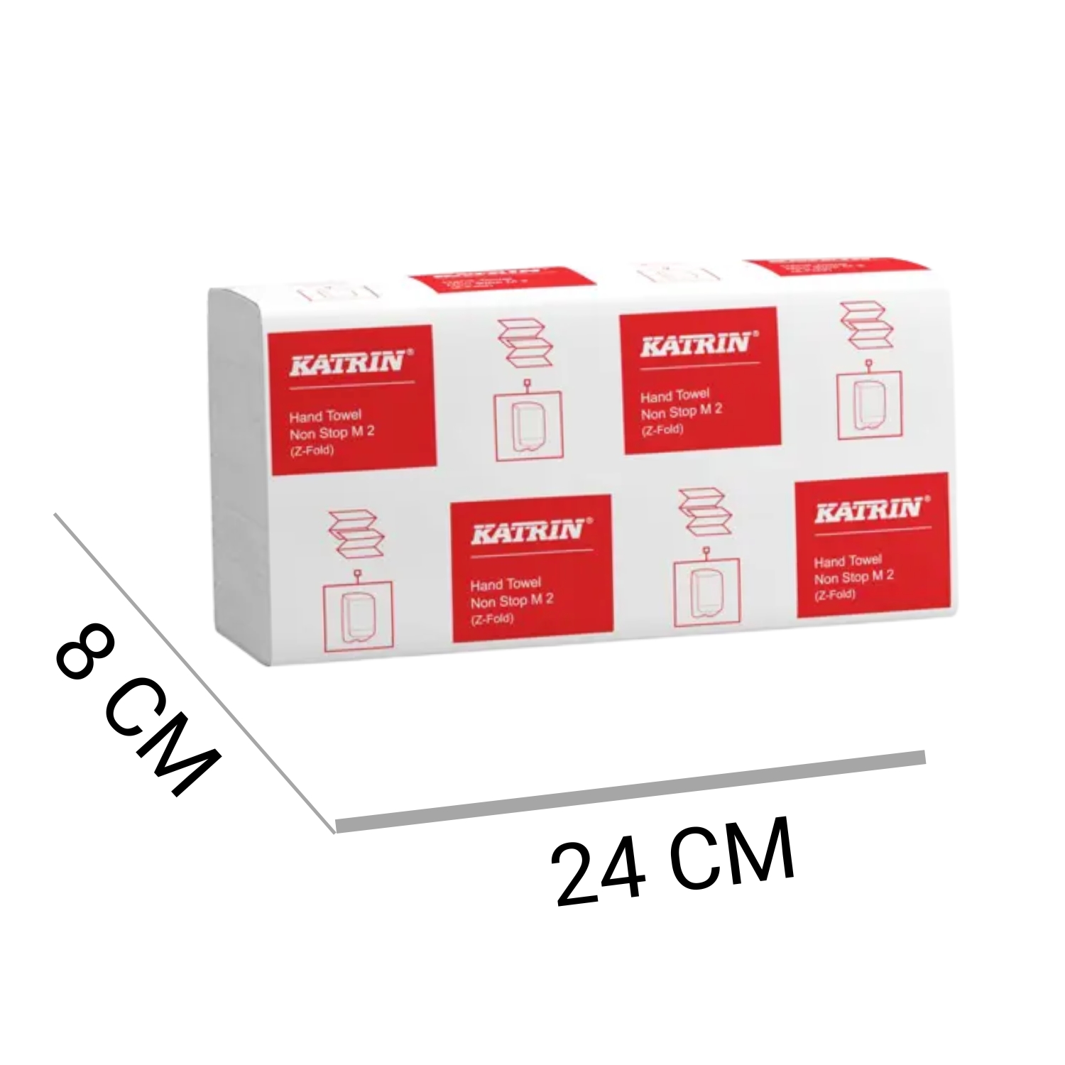 Katrin Z-fold Paper Towels Non-Stop Medium er 2-lags hvide papirhåndklæder i praktisk Z-fold.
