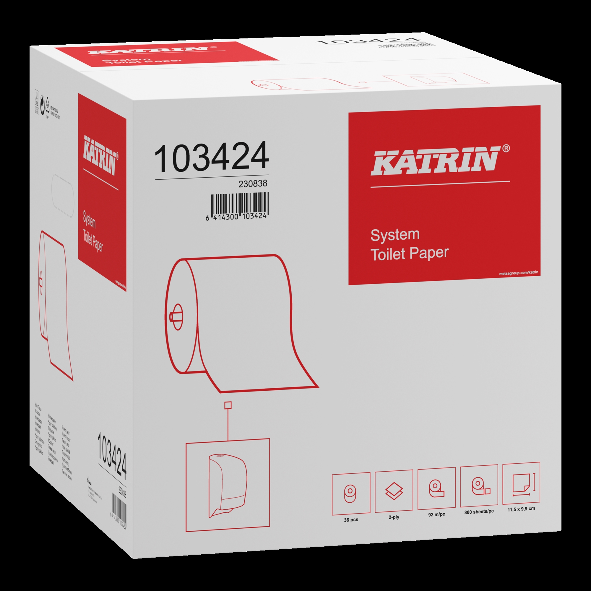 Katrin System Toiletpapir 2-lags 36 rl med holder.Katrin System Toiletpapir 2-lags 36 rl indpakning.