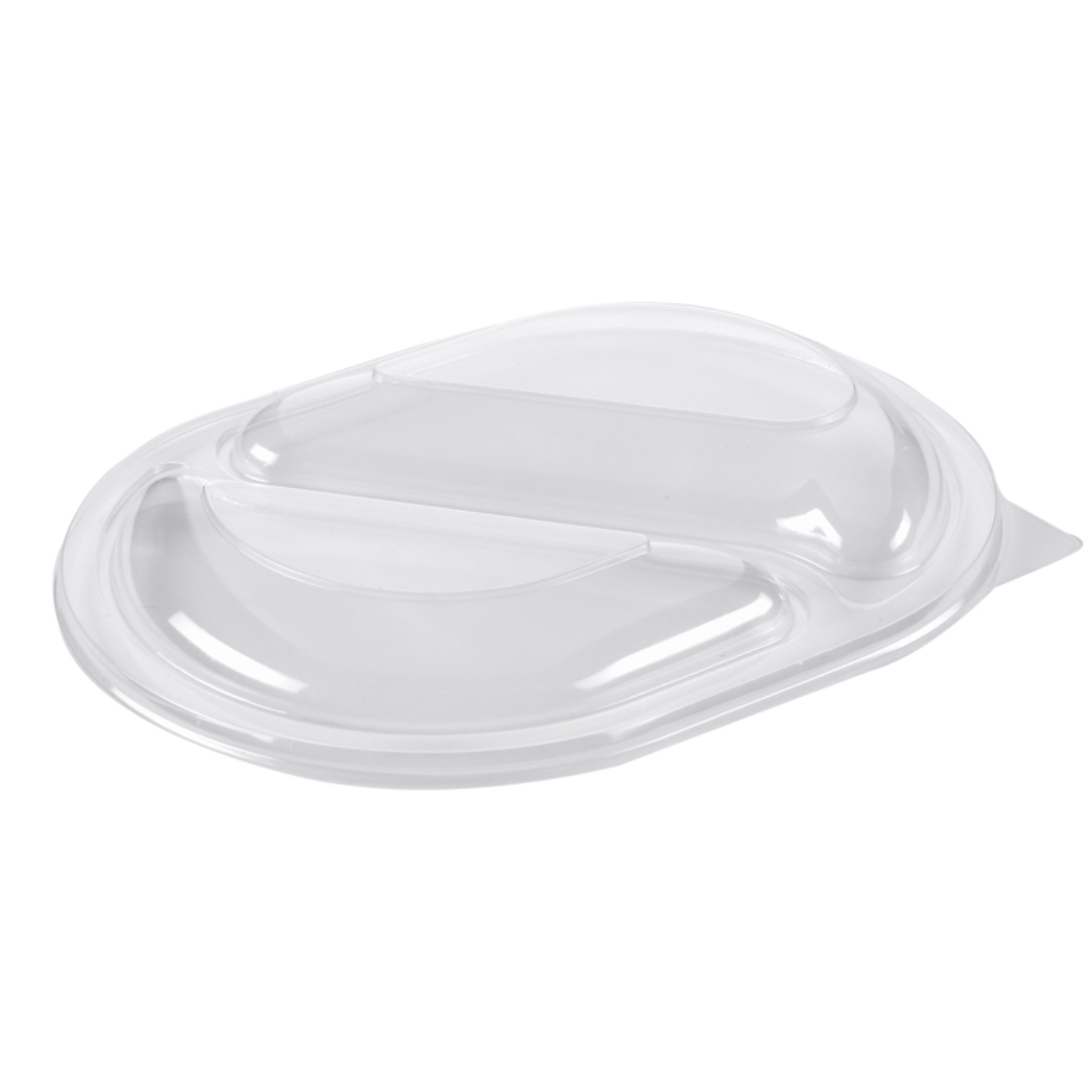 Et praktisk, ovalt plastlåg udviklet til at forbedre både præsentation og opbevaring af mad.