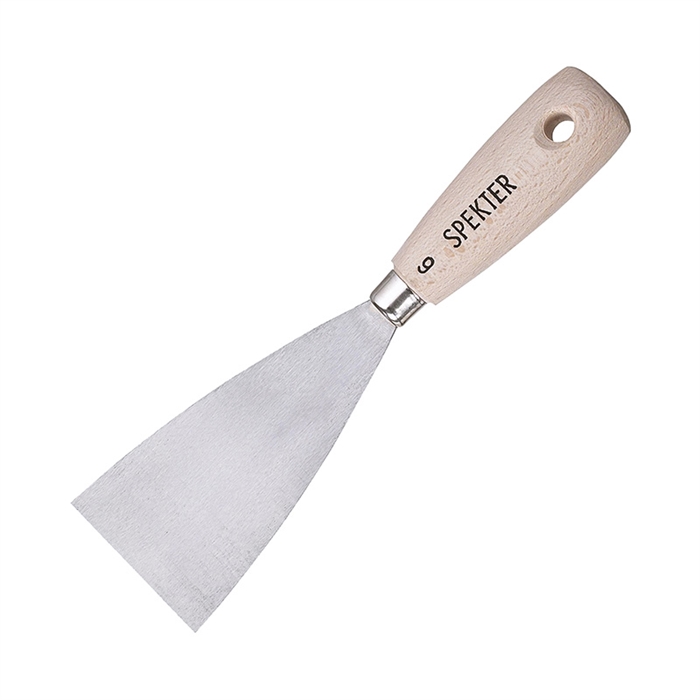 Spartel med ubehandlet træskaft. Produktet har en hård stålklinge på 4 cm Spartlen kan bl.a. bruges til let spartel eller til opgaver med filler.